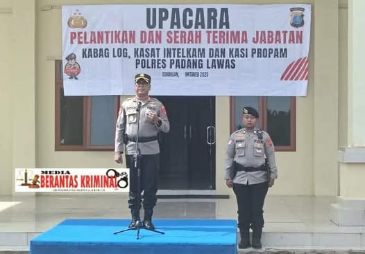3 min read Ragam Daerah Kapolres Pimpin Upacara Pelantikan dan Sertijab Kabag Log, Kasat Intel, dan Kasi Propam Polres Palas Senin , 13-Oktober-2025 Pimpinan Redaksi Padang Lawas, mediaberantaskriminal.com – Kapolres Padang Lawas AKBP Dodik Yuliyanto, SIK memimpin Upacara Pelantikan...