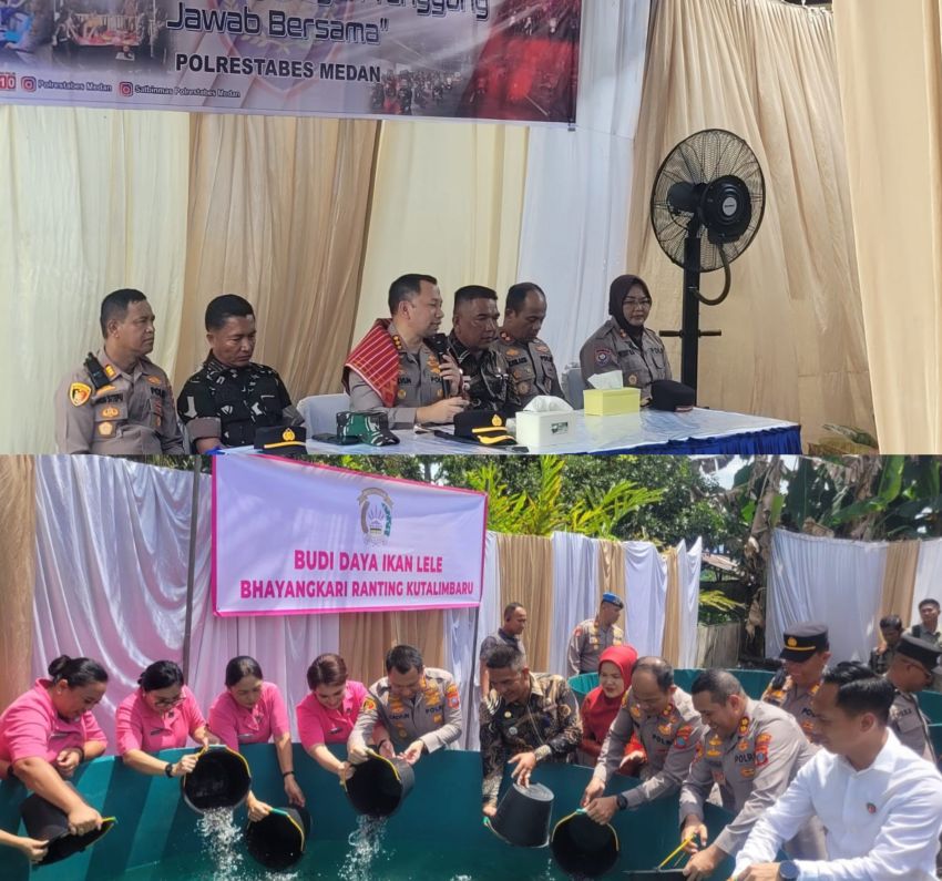 Acara diakhiri dengan penyerahan tali asih serta penaburan benih ikan lele oleh Kapolrestabes dan Ketua Bhayangkari di kolam budidaya Bhayangkari Ranting Polsek Kutalimbaru.