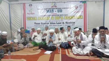 Batu Bara – Media Berantas Kriminal | Silaturrahmi Ustadz dan Ustazah (MAS-UD) Kabupaten Batu Bara mengadakan Zikir Akbar yang di Pimpin Tuan Syekh Silau Laut H. Ibrahim Silau dipasar Inpres jalan Rakyat Tanjung Tiram Kabupaten Batu Bara, Sabtu (31/12/2022).