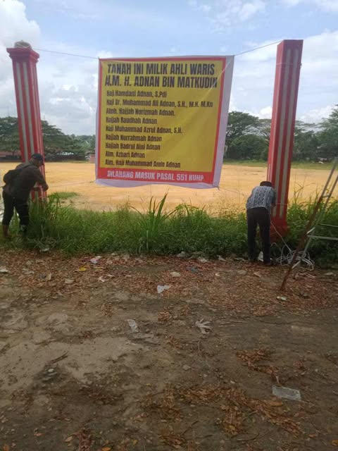 Selain itu, keluarga ahli waris menegaskan bahwa pemasangan plang kepemilikan bukan sekadar simbolisasi, melainkan bentuk nyata dari upaya mereka untuk melindungi hak waris yang telah diwariskan oleh almarhum H. Adnan bin Matkudin.