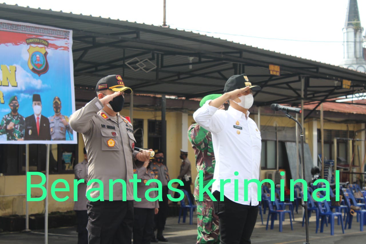 Siantar | MEDIABERANTASKRIMINAL.COM – Kapolres Pematangsiantar AKBP Boy Sutan Binanga Siregar,S.I.K bersama Walikota Pematangsiantar Hefriansyah Noor SE.,MM dan mewakili Dandim 0207/ SML Kapten Inf D Sembiring pimpin Apel Pelaksanaan Kesiapan Tenaga Vaksinator Tambahan Serentak di Sumatera Utara,Sabtu (10/7/202) pada pukul 10.00 bertempat di Lapangan Apel Polres Pematangsiantar.