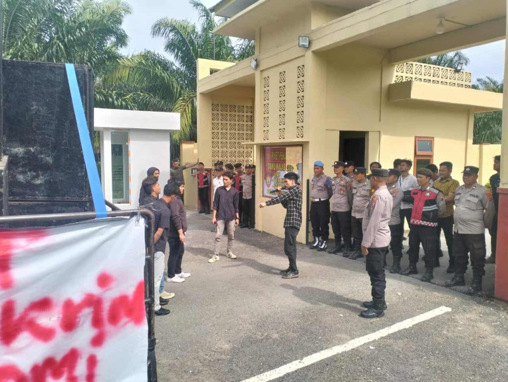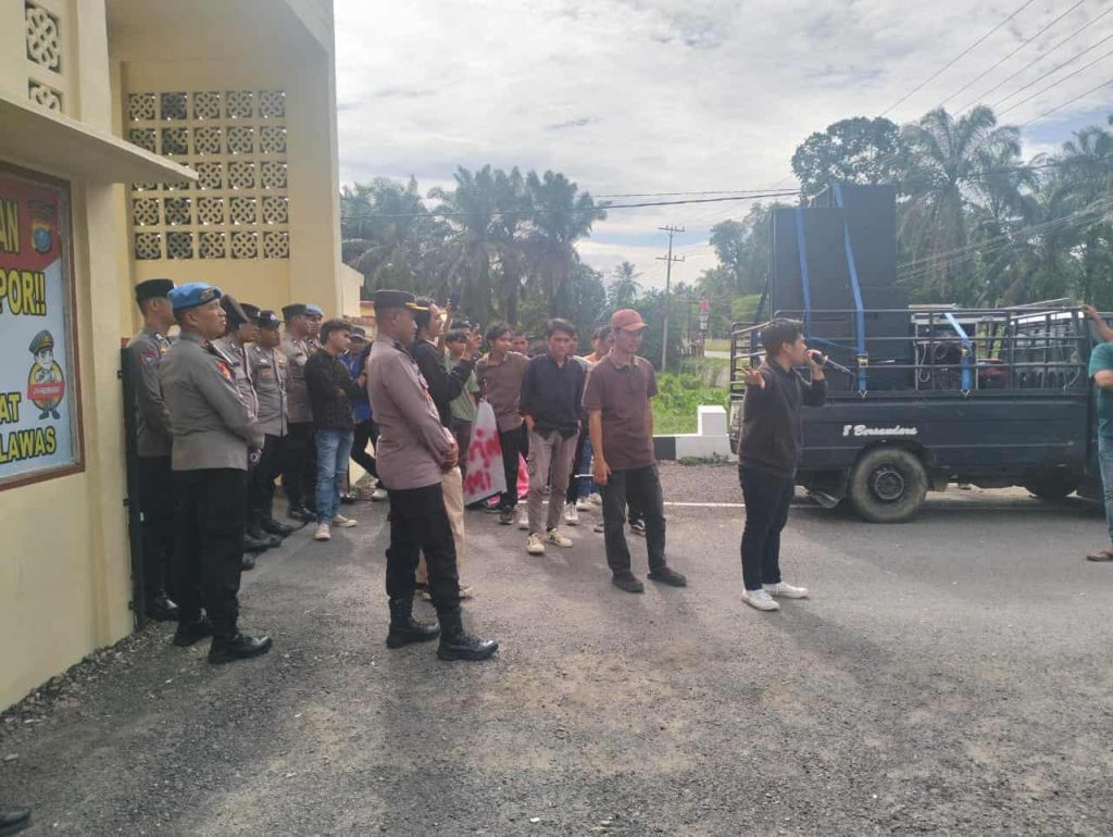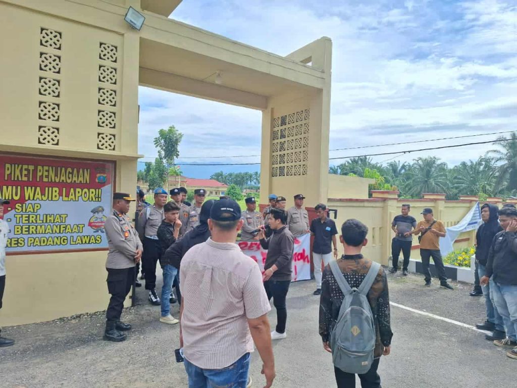 Padang Lawas, mediaberantaskriminal.com – Aksi unjuk rasa dari Aliansi Mahasiswa Padang Lawas (AMPLAS) yang dilakukan sekitar 15 orang dengan koordinasi lapangan Andika dan Koordinator aksi Riskidi di Depan Markas Kepolisian Resor Padang Lawas (Polres Palas), Kamis (23/10/2025) berjalan dengan tertib. Aksi demo yang berlangsung sejak siang hari hingga pukul 14.30 WIB berlangsung aman.
