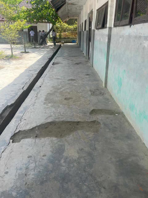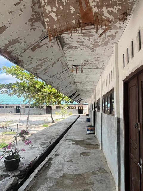 Hasil penelusuran menunjukkan kondisi fisik sekolah sangat memprihatinkan. Lantai koridor pecah, berlubang, dan terkelupas. Atap bangunan tampak lapuk, menganga, bahkan berpotensi ambruk sewaktu-waktu. Cat dinding kusam dan mengelupas, mencerminkan minimnya perawatan. Kondisi ini jauh dari standar kelayakan fasilitas pendidikan.