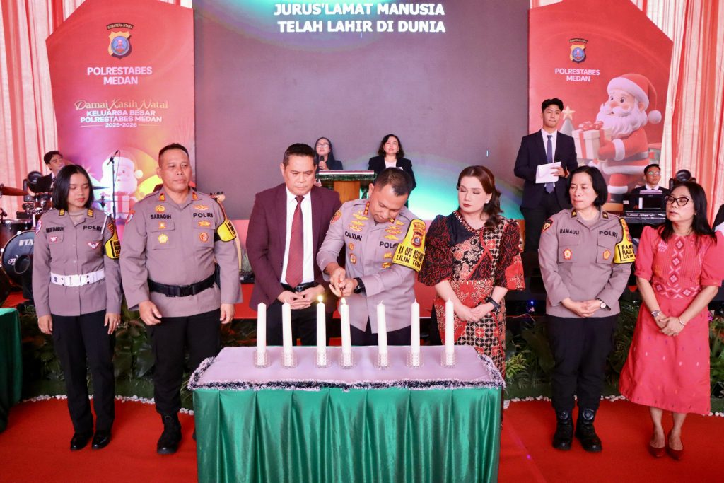 “Melalui perayaan Natal ini, saya berharap seluruh keluarga besar Polrestabes Medan dapat semakin mempererat kebersamaan, menjaga persaudaraan, serta menumbuhkan semangat pengabdian dalam melaksanakan tugas kepolisian,” ucap Kombes Pol Jean Calvijn Simanjuntak.