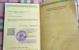 Duplikat buku nikah miliknya, yang dikeluarkan pada tanggal 11 November 2020 oleh KUA Kutalimbaru, Kabupaten Deli Serdang dan ditanda tangani oleh Subagio dan berstempel cap basah.