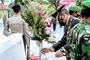 Tamu dibatasi karena upacara peringatan hari pahlawan berlangsung di tengah pandemi Covid-19, Bupati mengimbau para kepala OPD, camat dan kepala desa untuk tidak mengadakan upacara di kantor masing-masing. Para kepala OPD, camat dan kades pun diminta untuk hadir secara virtual melalui zoom meeting.