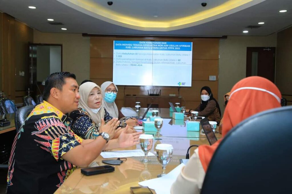 LABURA.Mediaberantaskriminal.com – Bupati Kabupaten Labuhanbatu Utara (labura) Hendriyanto Sitorus,S.E., M.M di dampingi Kepala Dinas Kesehatan Labura Hj. Jannah, SKM, M.M dan Kepala Dinas BKPSDM Labura Lahamuddin Munthe S.IP.,M.M melakukan audiensi Direktorat Jenderal Tenaga Kesehatan, Kementerian Kesehatan Republik Indonesia. Jumat, (21/10/22).