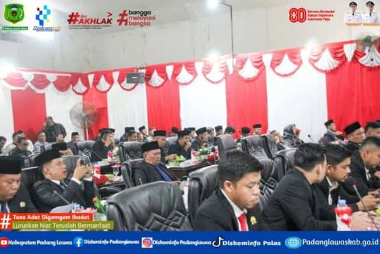 Ketua DPRD Kabupaten Padang Lawas Luat Hasibuan SE secara resmi pimpin dan buka rapat Penanda tanganan Nota Kesepakatan Tentang Rancangan Perubahan Kebijakan Umum (KUA) dan Prioritas dan Plafon Anggaran Sementara (PPAS) Tahun anggaran 2025 Kabupaten Padang Lawas.