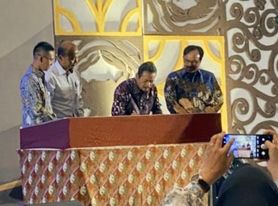 Peresmian Pabrik Pakan Ikan Mandiri Pasaman ditandai dengan penandatangan prasasti oleh Menteri Kelautan dan Perikanan didampingi Bupati Pasaman dan Dirjen Perikanan Budidaya KKP.