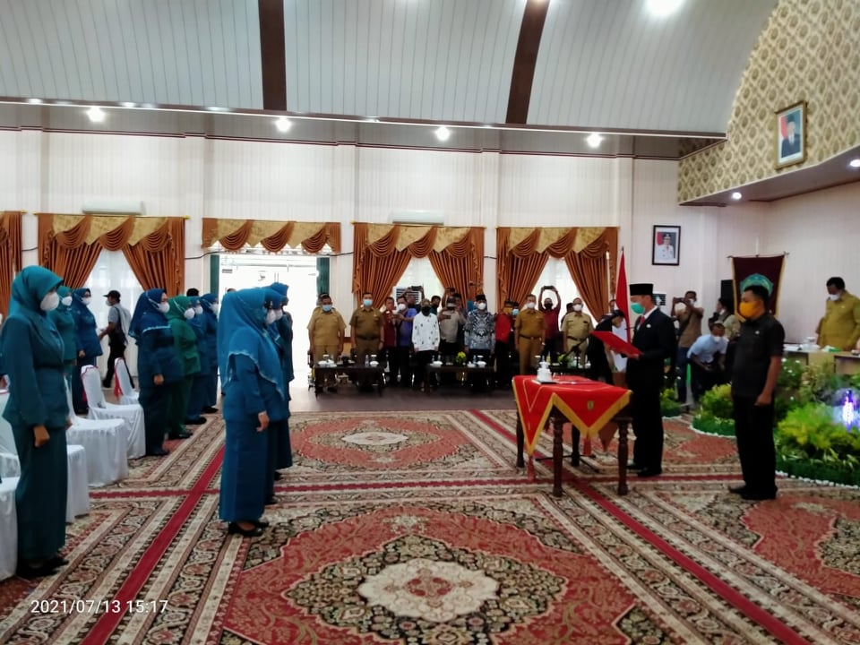 Rohil | MEDIABERANTASKRIMINAL.COM – Bupati Kabupaten Rokan Hilir (Rohil) Afrizal Sintong melantik secara resmi Pengurus Tim Penggerak Pemberdayaan Kesejahteraan Keluarga (PKK) Rohil di Gedung Misran Rais Jalan Utama Kecamatan Bangko Kabupaten Rokan Hilir, Selasa (13/07/2021).