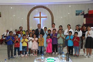 “Gereja adalah simbol kasih sayang dan kecintaan kita terhadap sesama. Saya juga datang ke Toba karena kecintaan saya ke Toba ini. Saya 16 tahun tinggal di Toba dan 40 tahun tinggal di perantauan,” katanya mengawali sambutannya.