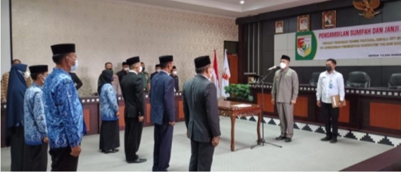 Pelantikan pejabat Jabatan Pimpinan Tinggi Pratama (JPTP) tersebut dilaksanakan di Ruang Rapat Bupati Pemkab Tubaba, Rabu siang (27/04/2022).