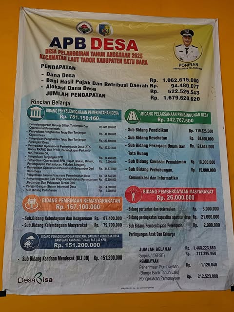 Batu Bara, Media Berantas Kriminal – Aparat Penegak Hukum (APH) di mohon Turun ke desa-desa untuk melakukan pemeriksaan secara mendalam terkait Dugaan Penyimpangan Dana Desa di Desa Pelanggiran Laut Tador merupakan sebuah desa yang terletak di Kecamatan Laut Tador, Kabupaten Batu Bara, Provinsi Sumatera Utara. Pasalnya, saat di konfirmasi beberapa perangkat desa tidak benar-benar mengetahui segala kegiatan Bidang yang menggunakan Dana Desa Tahun 2025.