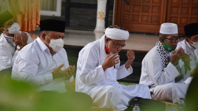 Langkat | mediaberantaskriminal.com – Jelang magrib, para jama’ah Umroh dan Alim Ulama se Langkat Hulu, datangi kediaman Bupati Langkat Terbit Rencana PA, di Desa Raja Tengah, Kecamatan Kuala, Kabupaten Langkat, Jumat (26/02/2021).