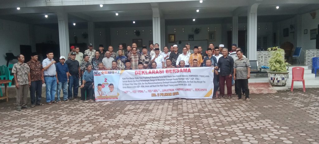 PADANG LAWAS, Media Berantas Kriminal – Dukungan terus mengalir ke pasangan AZP-IFDAL pada Pemilu Kepala Daerah Kabupaten Padang Lawas 2024. Kedatangan Rombongan Mantan Kepala Desa dan mantan perangkat Desa se-kabupaten padang lawas hadir untuk menyatakan Deklarasi dukungan kepada pasangan AZP-IFDAL, Kamis (26/09/2024).