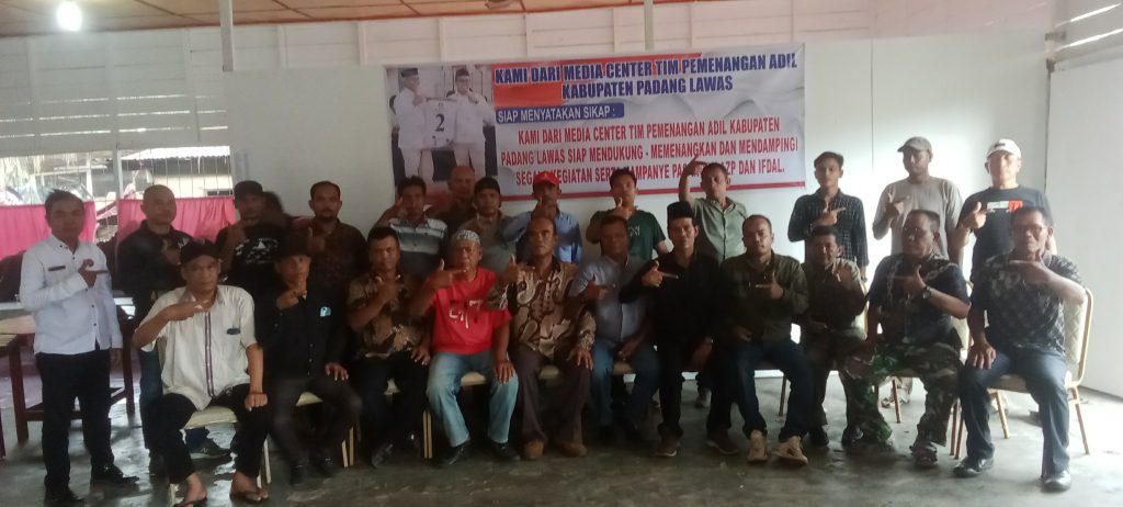 PADANG LAWAS, Media Berantas Kriminal – Sebanyak 22 orang yang tergabung dalam Media Center Tim Pemenangan ADIL Kabupaten padang lawas mendeklarasikan diri untuk mendukung dan memenangkan pasangan AZP-IFDAL.