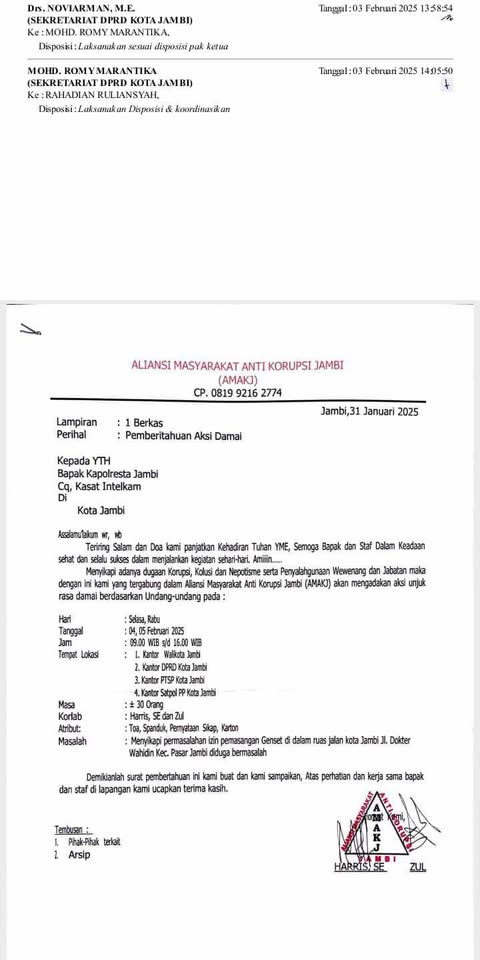 Untuk itu gabungan aktivis pemerhati kebijakan ,Yang menamakan gerakannya dengan nama aliansi masyarakat anti korupsi Jambi (AMAKJ) mendatangi gedung kantor Satpol PP kota Jambi pada Selasa 04 Febuari 2025, mengelar aksi unjuk didepan gedung kantor tersebut. Dalam orasinya M.Harris SE, yang merupakan pengurus di dalam perkumpulan lembaga lihat inspirasi masyarakat (LLIM),dan juga sebagai korlap aksi aliansi masyarakat anti korupsi Jambi (AMAKJ).