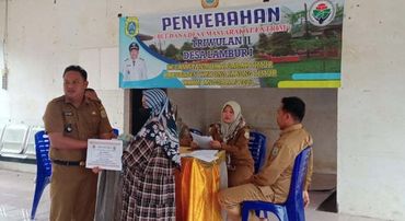 Bertempat di Balai Desa Lambur 1, BLT-DD disalurkan langsung oleh Kades Agus Warsidi dan dihadiri oleh aparatur desa dan pendamping desa.