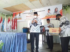 Ketua PGRI kecamatan Maryam SPD MSi bersama kepala dinas Kadisdik Ilyas Sitorus SE MPd juga wakil ketua kabupaten Basharuddin MSi serta sepala desa Tanah Datar, Sari Suseno, Kepala desa Sumbertani Suderman serta seluru kepala sekolah kecamatan Datu Tanah Datar turut menyantuni atau berbagi kepada anak yatim Batu Bara.