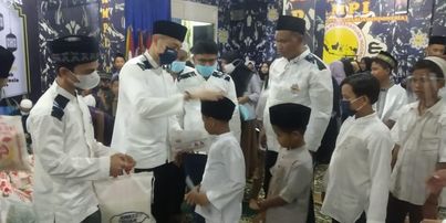 Dilanjutkan shalat maghrib berjama’ah, pemberian santunan kepada sebanyak lebih kurang 65 anak yatim, serta diakhiri makan malam bersama.