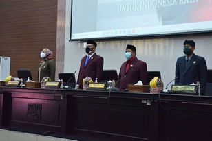 Selanjutnya pimpinan sidang membuka rapat Paripurna dan dilanjutkan dengan menyanyikan lagu Indonesia Raya, Laporan Pansus- pansus DPRD, Laporan Badan