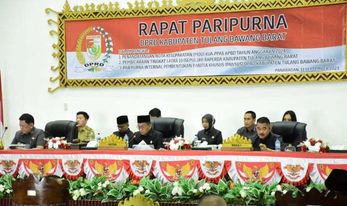 Rapat dipimpin ketua DPRD Kabupaten Tubaba Ponco Nugroho dan diikuti para wakil ketua beserta anggota DPRD Kabupaten Tubaba, di Ruang Rapat Paripurna DPRD kabupaten setempat, Senin (11/09/2023).