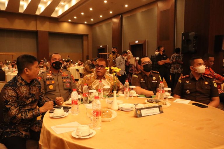 Medan – Media Berantas Kriminal | Bupati Mandailing Natal (Madina) HM Jafar Sukhairi Nasution bersama Ketua DPRD Madina Erwin Efendi Lubis, Kapolres Madina AKBP HM Reza Chairul AS, dan Kasubagbin Kejari Madina Putra Masduri menghadiri Rapat Koordinasi Percepatan Realisasi APBD Kabupaten/Kota se-Sumatera Utara tahun 2022 yang akuntabel sesuai dengan PP Nomor 12 Tahun 2019.