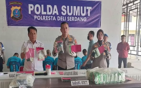 Pengungkapan tersebut dipaparkan Kapolresta Deli Serdang, Hendria Lesmana, didampingi Wakapolresta AKBP Juliani Prihartini dan Kasat Narkoba Kompol Fery Kusnadi di Aula Terbuka Mapolresta Deli Serdang, Kamis (26/02/2026).