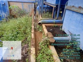 Terlihat satu unit bangunan gedung tempat penyimpanan mesin boster penyuplai air perusahaan daerah air minum (PDAM) Tirta Muaro Jambi, yang berdiri di atas tanah milik pemkab kabupaten Muaro Jambi, sejak berdirinya beberapa tahun lalu, hingga saat ini kondisi nya sangat memprihatinkan.