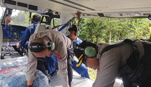 Komisaris Besar Yudhi Surya Markus Pinem, yang memimpin distribusi bantuan, menyampaikan bahwa berdasarkan pantauan udara, terdapat lebih dari sepuluh titik longsor yang belum tertangani. Kondisi tersebut membuat jalur darat menuju lokasi terdampak belum dapat dilalui.