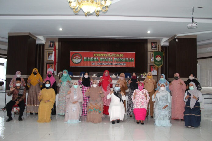 Langkat | mediaberantaskriminal.com – Dharma Wanita Persatuan (DWP) Kabupaten Langkat menggelar pengajian bulanan, di Ruang Pola Kantor Bupati Langkat, Stabat, Selasa (02/03/2021).