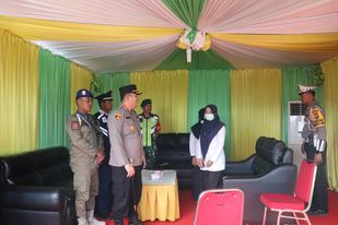 Kapolres Langkat dalam pengecekan Pos Pam dan Pos Yan, mengecek kehadiran Personil yang tersprin, dan perlengkapan perorangan bagi setiap Personil.