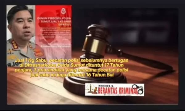 BINJAI, mediaberantaskriminal.com – Tiga orang yang tergabung dalam sindikat penjualan 1 kg sabu-sabu bersama pecatan polisi yang sebelumnya bertugas di Ditresnarkoba Polda Sumut Aipda Erina Sipatura alias ES juga turut diadili. Ketiga orang tersebut dituntut 16 tahun penjara.