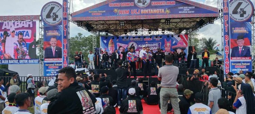 DAIRI, Media Berantas Kriminal – Rabu 27 November 2024, Kampanye Akbar Paslon No Urut 4 dilaksanakan di Stadion Panji Sibura bura Sidikalang Kabupaten Dairi. Massa dan simpatisan yang hadir mencapai 7000rb orang dari 15 Kecamatan yang ada di Dairi dan sangat Antusias menghadiri Kampanye Akbar RIM ULI BINTANGTA.