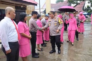Padang Lawas – Media Berantas Kriminal | Kapolres Padang Lawas AKBP Diari Astetika S.IK bersama rombongan kunjungan kerja di sambut Kapolsek Barumun Iptu Sakti K Harahap SH di Mako Polsek Barumun, Jum’at (02/02/2024).