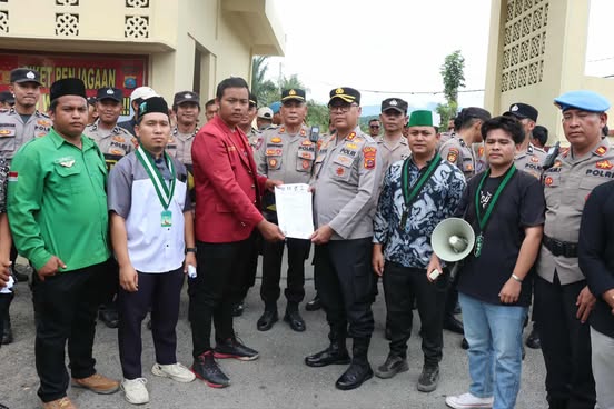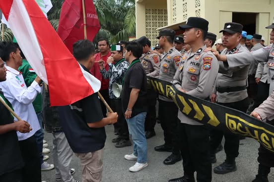 “Alhamdulillah, aksi hari ini berlangsung aman dan tertib. Kami mengapresiasi rekan-rekan mahasiswa yang menyampaikan pendapat dengan damai,” pungkas Ps Kasubsi Penmas Bripka Ginda K Pohan. (Humas Polres Palas)