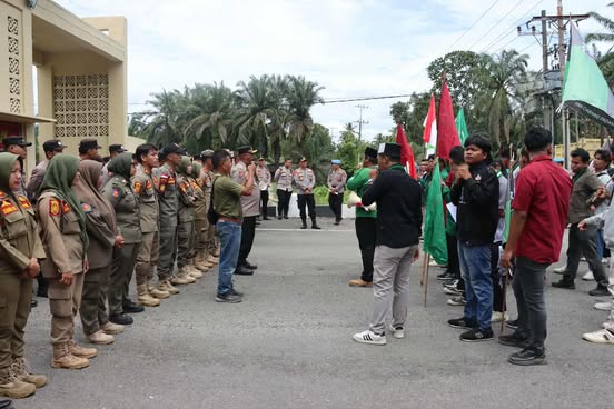 Hadir dalam giat pengamanan unjuk rasa damai tersebut, Kapolres Palas AKBP Dodik Yuliyanto S.IK.