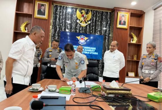 Dalam hal ini, adapun yang mengikuti Penandatangan Serah Terima, Kaban Penda Provsu Ahmad Fadly Sos Msp, Kasubdit Regident Polda Sumut Akbp Sah Udur Sitinjak S.H S.I.K, M.H, kepala JR Cabang Sumut, Kabid Pengendalian dan Evaluasi Pendapatan Daerah Sofyan Romi Wandi Hutagalung SAP, Kabid Pengelolaan Sistem dan Informasi Fahruddin Ritonga, Ka Upt Medan Utara Drs Faisal Fahmi Hasibuan, kasat Lantas Tapsel Akp Daniel Saragih S.H, M.H, Kasat Lantas Palas Akp Tongan Siregar, S.H, Paur Bpkb Akp Andi Barus, Paur Stnk Akp Wardiati , Kanit Regident Palas Ipda Yusuf Indra k Siregar, S.H, Ka upt Tapsel dan Ka Upt Palas.