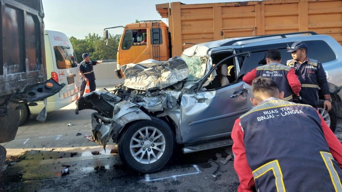 “Pengemudi mobil Mitsubishi Pajero BK 1886 AAX tidak konsentrasi pada saat mengemudikan kendaraanya dan tidak melihat ada mobil truk tronton yang berjalan di depannya. Kemudian menabrak bagian bagian belakang tronton, sehingga terjadi lakalantas,” kata Muji.