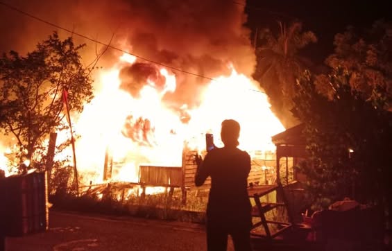 LABUHANBATU UTARA, mediaberantaskriminal.com – Desa Sialang Taji, Kecamatan Kualuh Selatan, Kabupaten Labuhanbatu Utara, Sumatera Utara, dilanda musibah kebakaran yang menghanguskan 4 rumah warga pada Senin (16/03/2026) sekitar pukul 19.14 WIB, di waktu berbuka puasa dan sholat Maghrib. Api dengan cepat membakar bangunan semi permanen, sehingga 4 rumah ludes terbakar tanpa sisa.