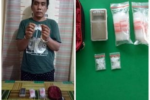 Seorang laki-laki yang dicurigai dan personil menangkap tersangka dan lakukan penggeledahan.Ditemukan dikantong celana sebelah kiri dua pelastik kecil bening yang didalamnya diduga narkotika jenis Sabu dan berbagai barang bukti lainnya.