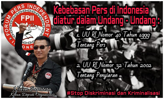 Ketua Deputi Organisasi FPII Noven Saputera meminta kepada Bupati Ade Yasin untuk tidak memecah belah dan menyebar fitnah kepada wartawan.