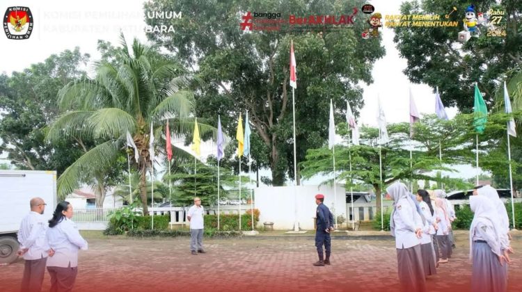 Batu Bara, Media Berantas Kriminal – Bertempat di Halaman Kantor KPU Kabupaten Batu Bara, Sekretariat KPU Kabupaten Batu Bara mengadakan apel pagi rutin, Senin (02/12/2024).