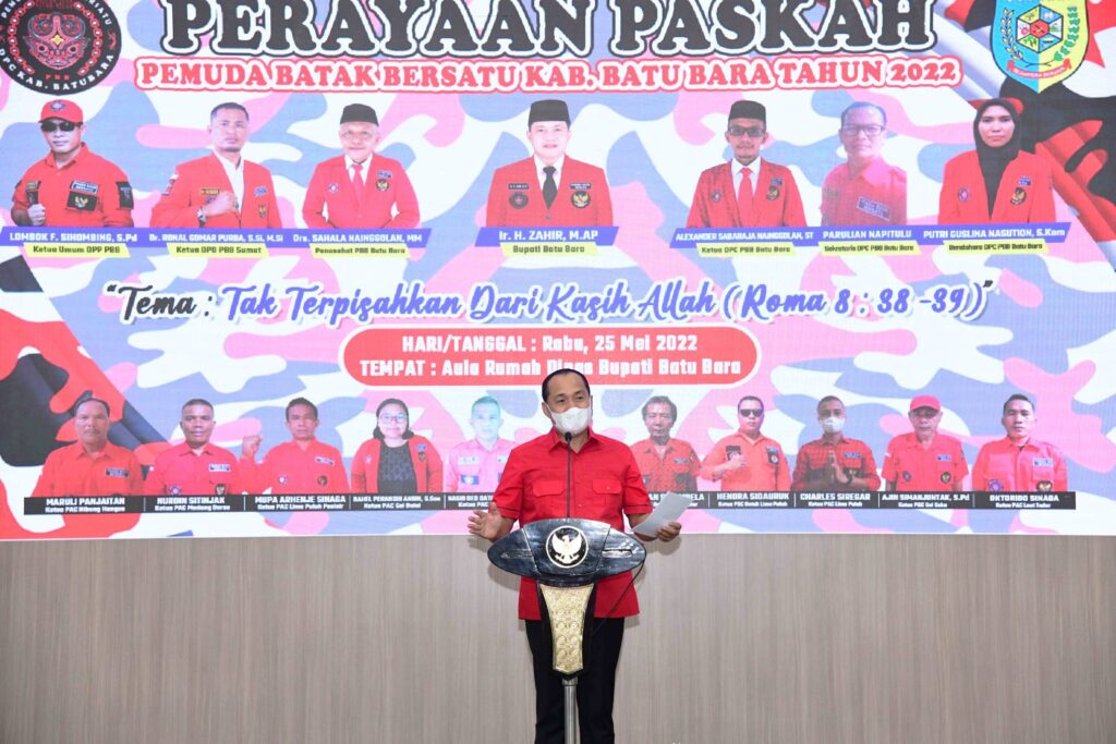 Batu Bara – Media Berantas Kriminal | Bupati Batu Bara, Ir. H. Zahir, M.AP, menghadiri Perayaan Paskah Pemuda Batak Bersatu Kabupaten Batu Bara tahun 2022, yang digelar di Aula Rumah Dinas Bupati Batu Bara, Kecamatan Sei Suka, Rabu (25/05/2022).