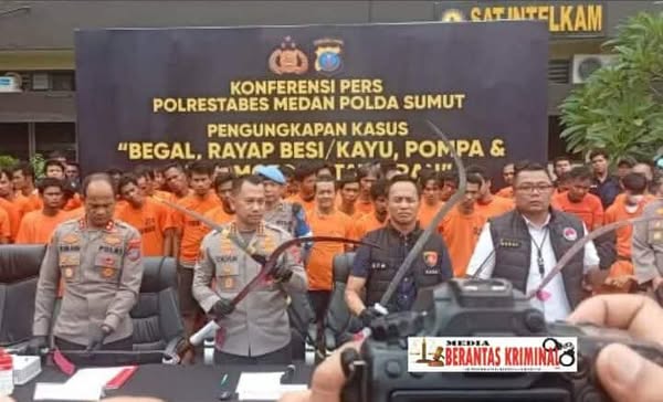 Medan, mediaberantaskriminal.com – Polrestabes Medan bersama polsek jajaran dalam kurun waktu 15 hari menangkap 147 bandit pelaku kejahatan yang meresahkan masyarakat di Kota Medan, sekitarnya.