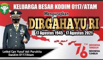 Aceh Tamiang – Media Berantas Kriminal | Dalam rangka mengisi Kemerdekaan Republik Indonesia pada HUT ke-76, team Media Center Kodim menyampaikan sambutan Letkol Cpn Yusuf Adi Puruhita selaku Dandim 0117/Aceh Tamiang, kegiatan dilaksanakan di Markas Komando Kodim, kecamatan Karang Kejuruan Muda Kabupaten Aceh Tamiang pada Senin (16/08/2021).