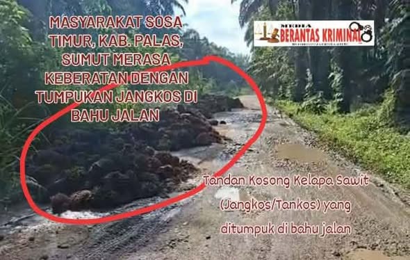 PADANG LAWAS (mediaberantaskriminal.com) – Jalan Lintas Sosa Riau menuju Perbatasan Sumut – Riau (Jl.Pangkalan Sosa) dipenuhi sampah jangkos yang diduga berasal dari PT KAS Sibodak Papaso di Wilayah Desa Salambue Kecamatan Sosa Timur Kabupaten Padang Lawas, Jumat (17/04/2026).