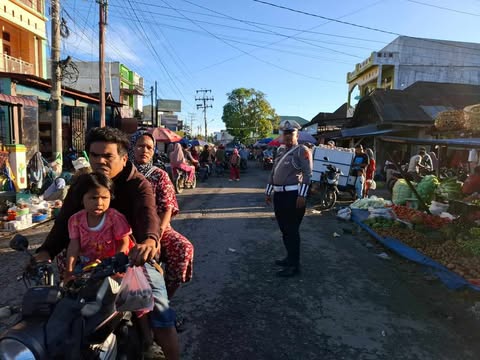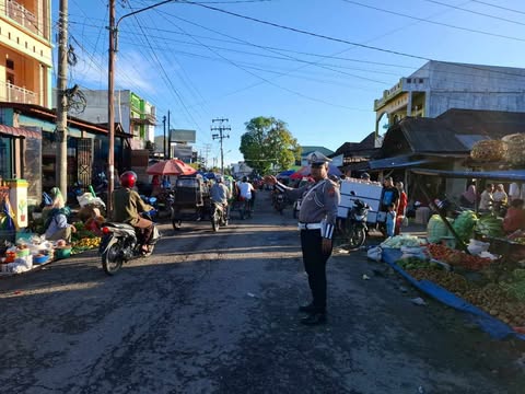 Padang Lawas, Media Berantas Kriminal – Personil Satuan Lalu Lintas Polres Padang Lawas Bripka Bandaharo Harahap laksanakan kegiatan pengaturan arus lalu lintas padat pagi demi terciptanya Kamseltibcarlantas di Pasar Pagi Wek I Sibuhuan, Jum’at (20/12/2024).