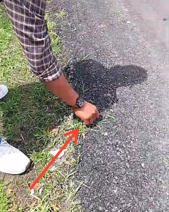 Pertumbuhan rumput di permukaan aspal yang baru saja dikerjakan juga menjadi perhatian, karena menurut standar teknis, permukaan jalan yang baru selesai harus memiliki drainase yang baik dan bebas dari vegetasi yang dapat merusak struktur aspal dalam waktu singkat.