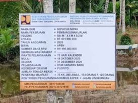 Tanjung Jabung Timur – Media Berantas Kriminal | Kasus dugaan adanya penyimpangan pada pembangunan jalan beton program Kota Tanpa Kumuh ( KOTAKU ) tahun anggaran 2020 yang berlokasi di Kelurahan Nipah Panjang II Kecamatan Nipah Panjang Kabupaten Tanjung Jabung Timur – Jambi, hingga saat ini masih bergulir di Cabang Keaksaan Negeri ( Cabjari ) Tanjab Timur.